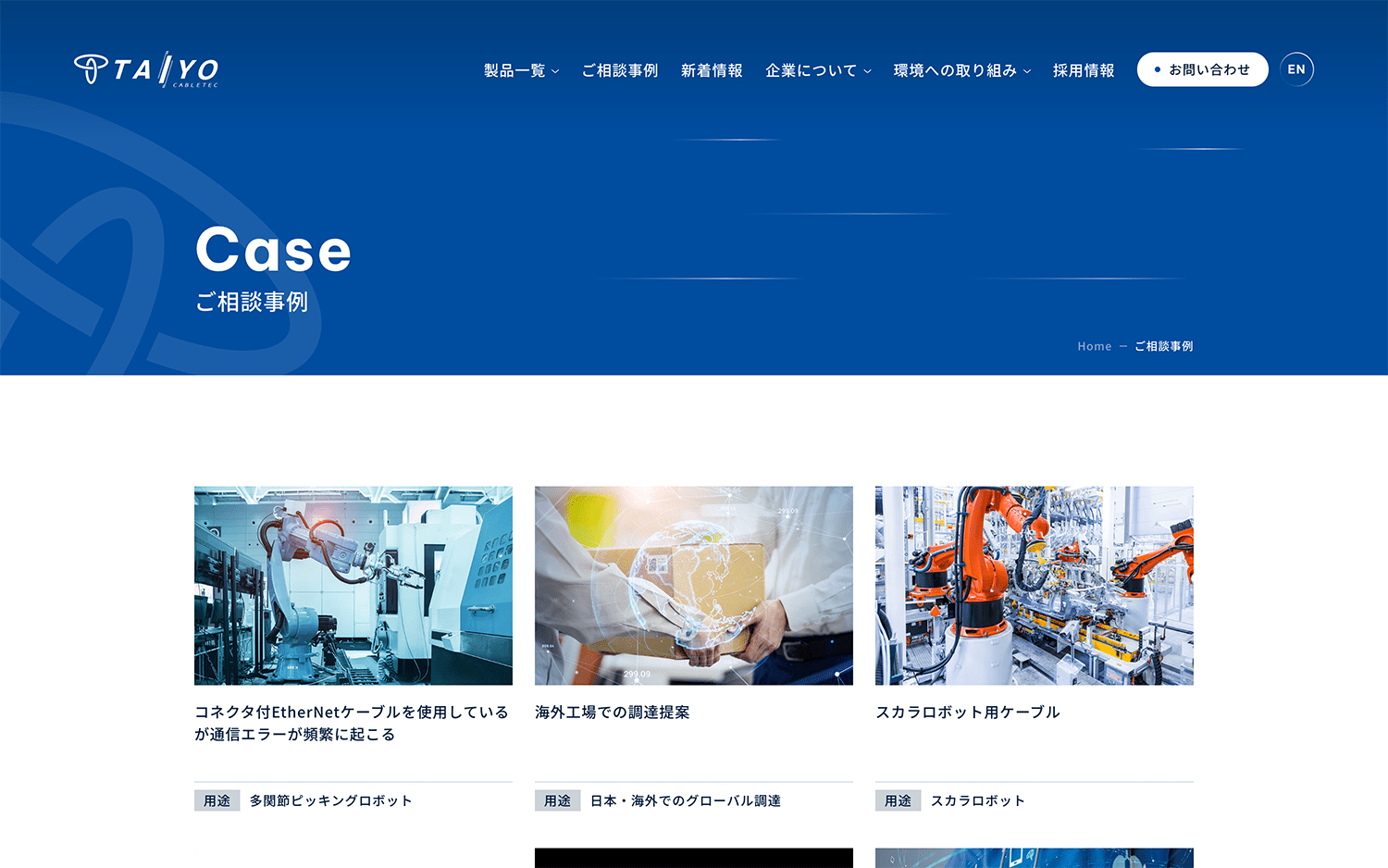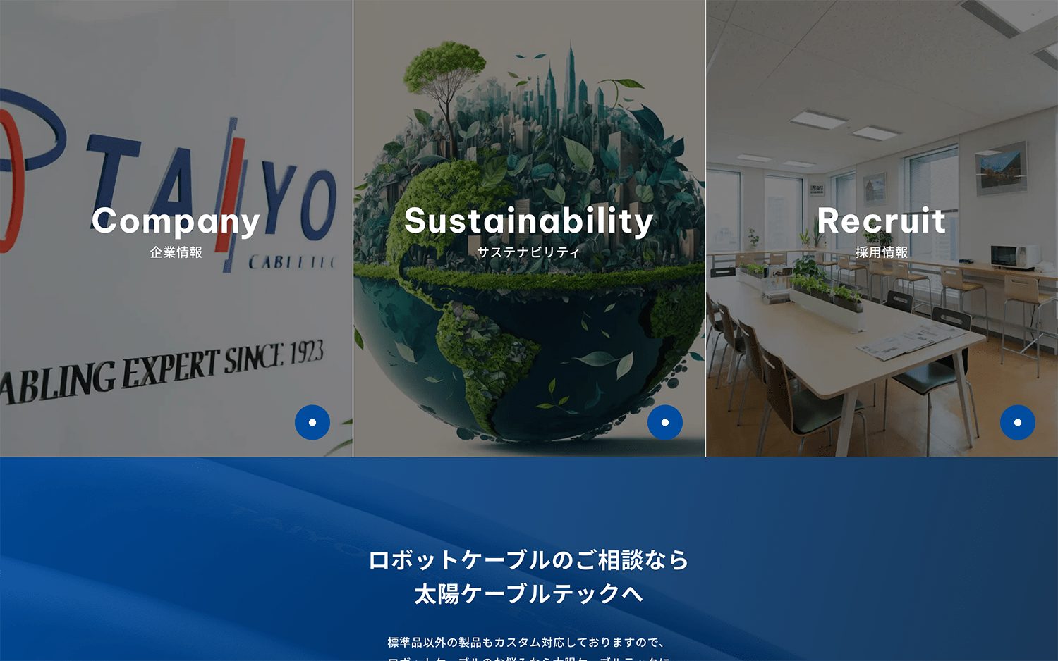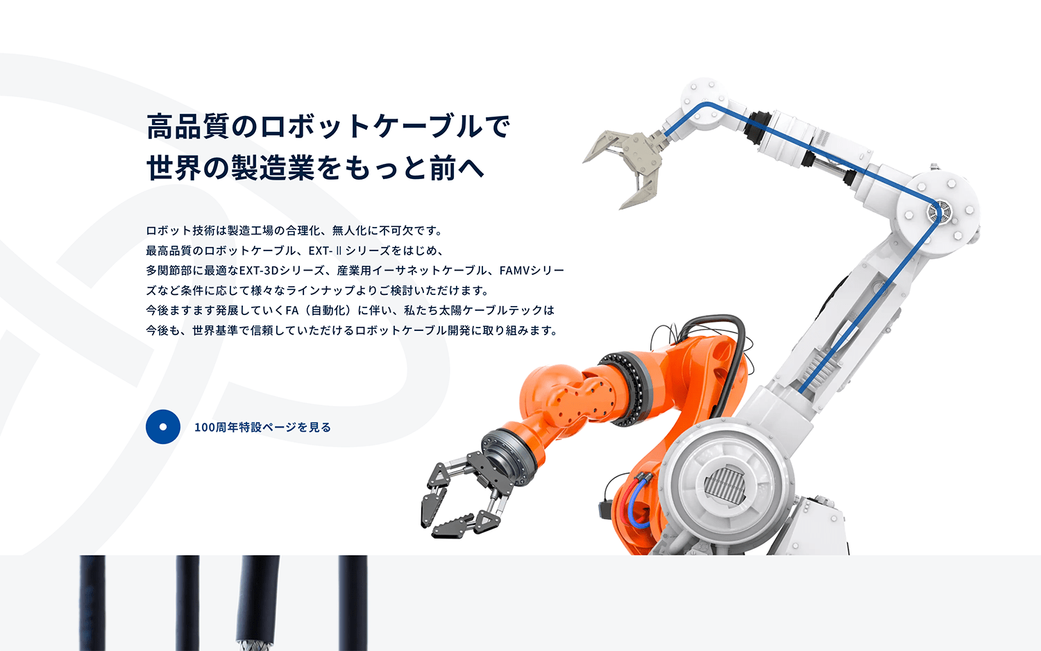 ロボットケーブルを開発/販売している太陽ケーブルテック株式会社様のコーポレートサイトをデザインしました。