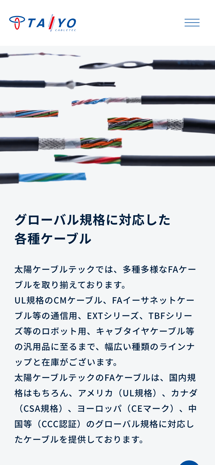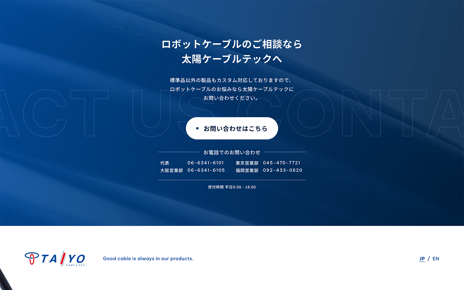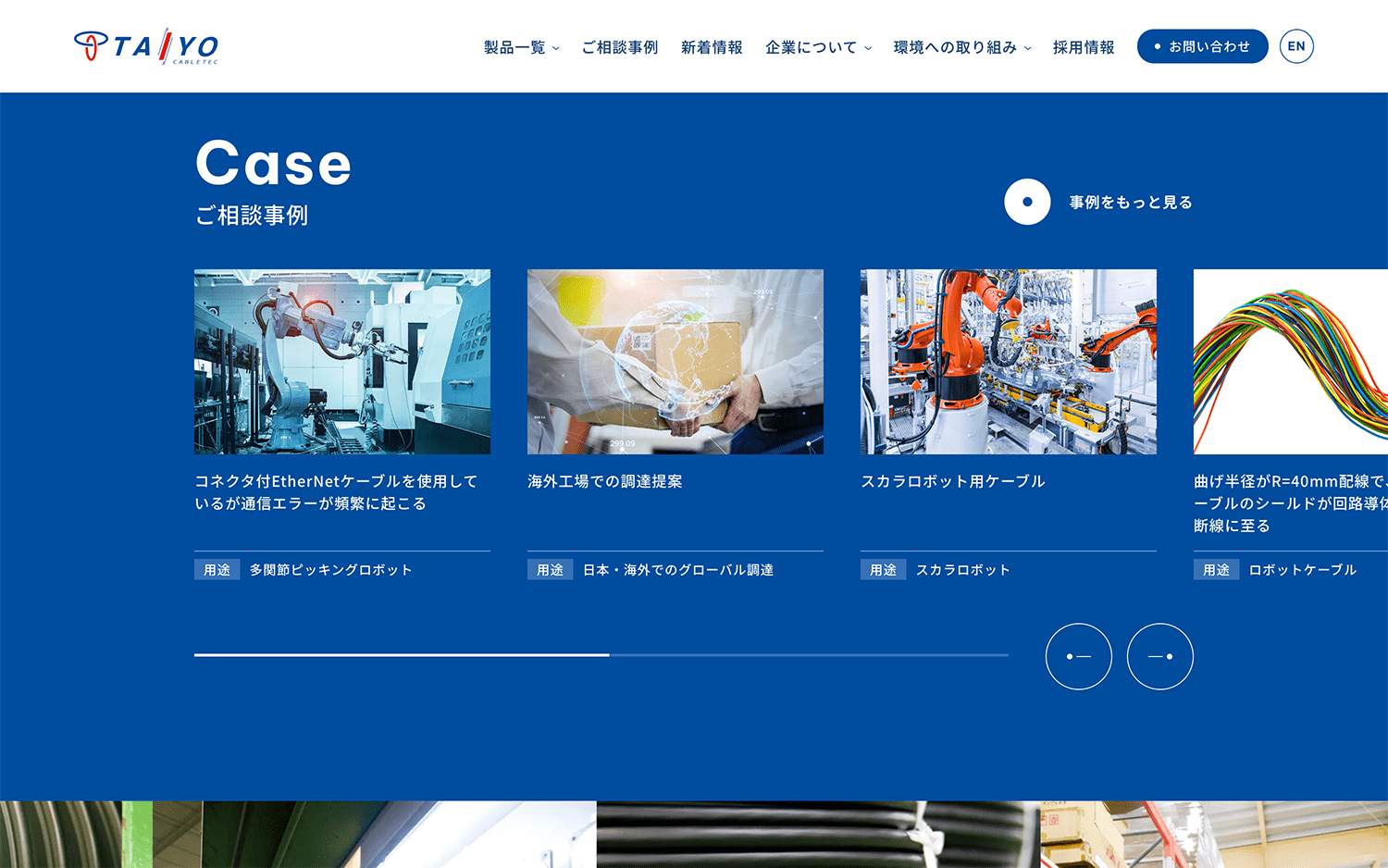 ロボットケーブルを開発/販売している太陽ケーブルテック株式会社様のコーポレートサイトをデザインしました。